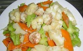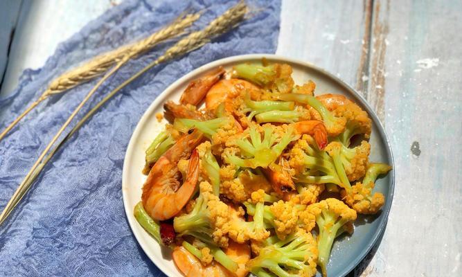 美味佳肴(以菜花为主角,虾仁为点缀,一道色香味俱佳的家常菜)