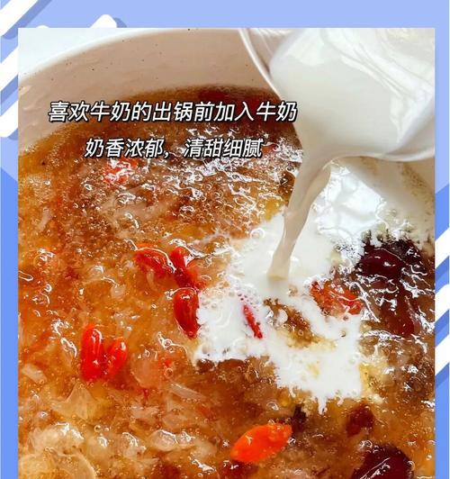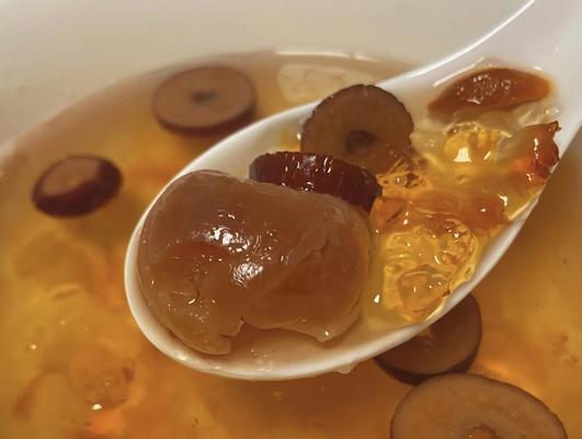 在羹汤中加入枸杞、桂圆、红枣等其他食材,继续小火慢煮15-20分钟。